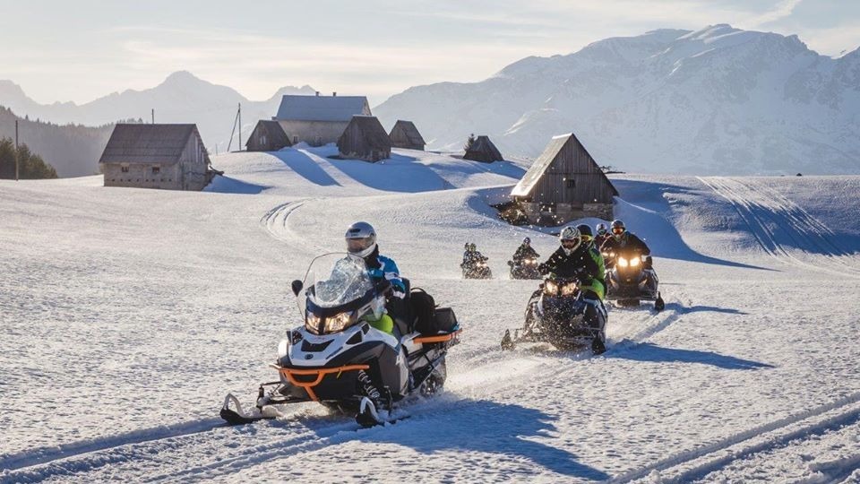 - You will ride snowmobiles for several kilometers across Durmitor and then continue through the Sinjajevina mountain. Sinjajevina is one of the most beautiful mountains in Montenegro, known for its vast pastures – the largest in the Balkans. It is surrounded by the towns of Kolašin, Mojkovac, Žabljak, Šavnik, Nikšić, and Danilovgrad. Sinjajevina is home to many "katuns" (small traditional Montenegrin villages) that are inhabited only during the summer, but visitors will have the chance to see them during winter tours on snowmobiles. In addition to its natural beauty, Sinjajevina is home to some cultural landmarks and monuments, the most famous being the Ružica Church, built by King Nikola in the 18th century. Guests will also enjoy breathtaking views of the surrounding mountains, Durmitor National Park, and the highest peaks of Montenegro. Note: Children aged 5+ can ride with a parent.